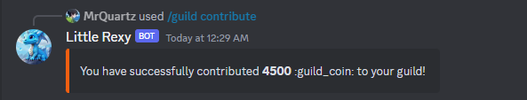 You can contribute to your guild by <mark style="color:blue;">**/guild contribute \[amount]**</mark> :&#x20;